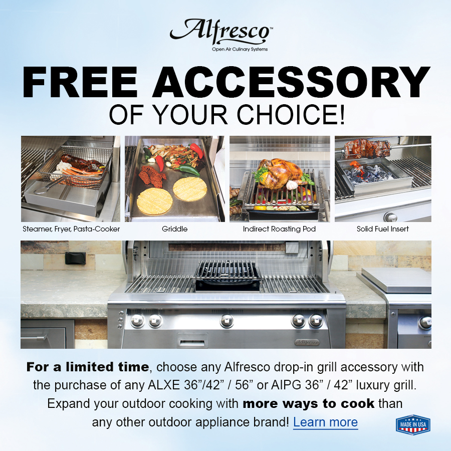 Throughout the years, Alfresco has set the standard for innovation in the outdoor kitchen appliance market. No other manufacturer can lay claim to more industry firsts and exclusive products than Alfresco.